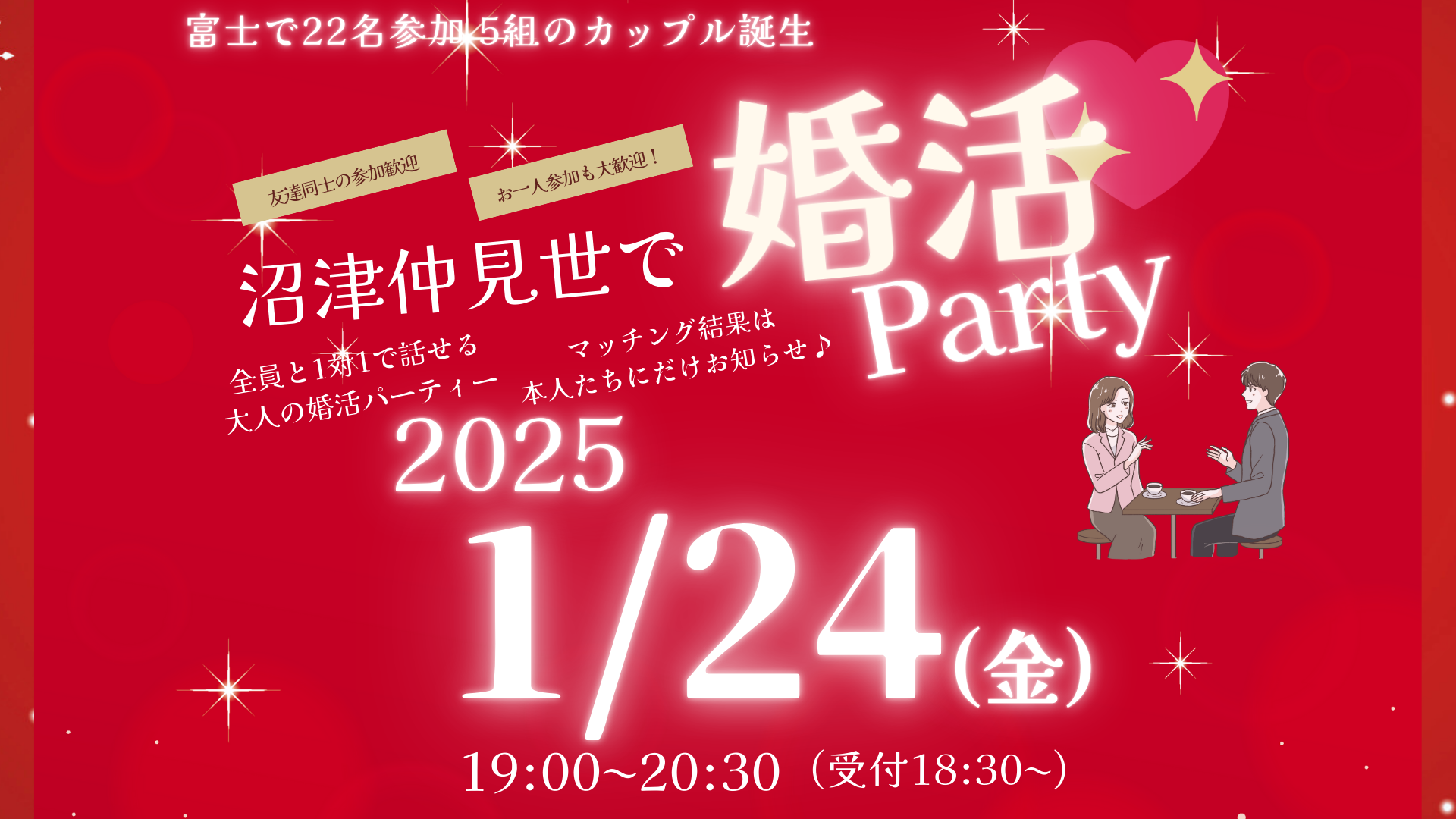 【30歳~43歳】1/24(金) 沼津で最大10対10の婚活パーティーを開催!