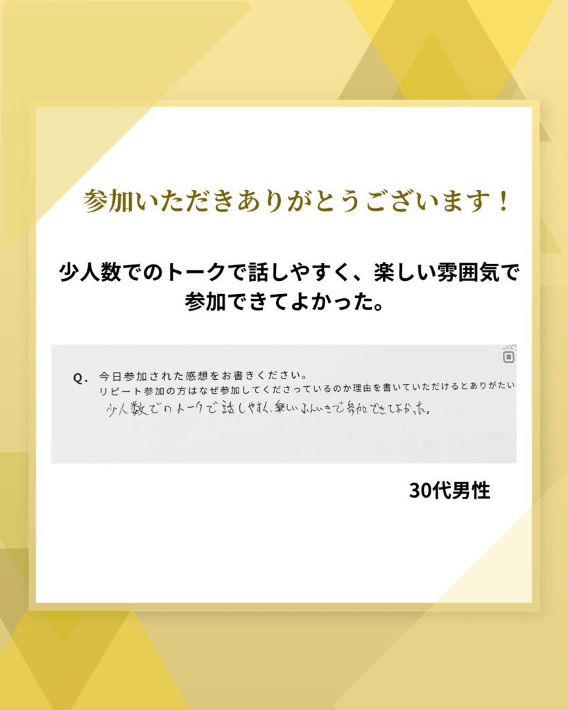 1対1のトークとグループトークを組み合わせているので、緊張せずに自然な出会いを楽しめます。